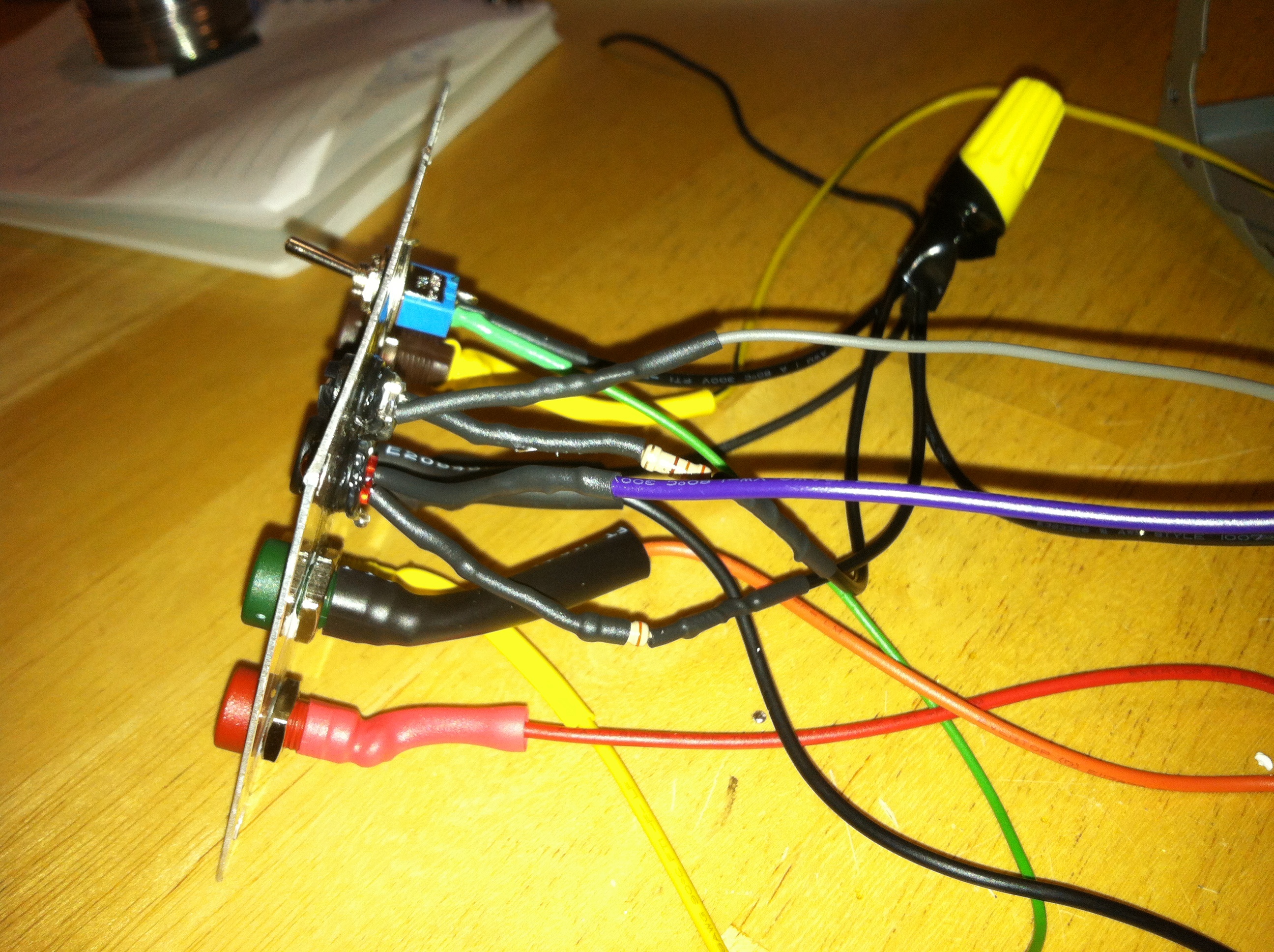 Earlier this week I tried the first time. In short, I forgot the “lay out the interface first” rule. Power supplies are generally built on a chassis with a second piece of metal that slides on as a cover. On most power supplies, the chassis pieces extend on two sides, holding the fan and AC input on one side and a lot of mesh for airflow on the other. No problem, I though, I’ll put the binding posts on the cover. Very, very bad idea.