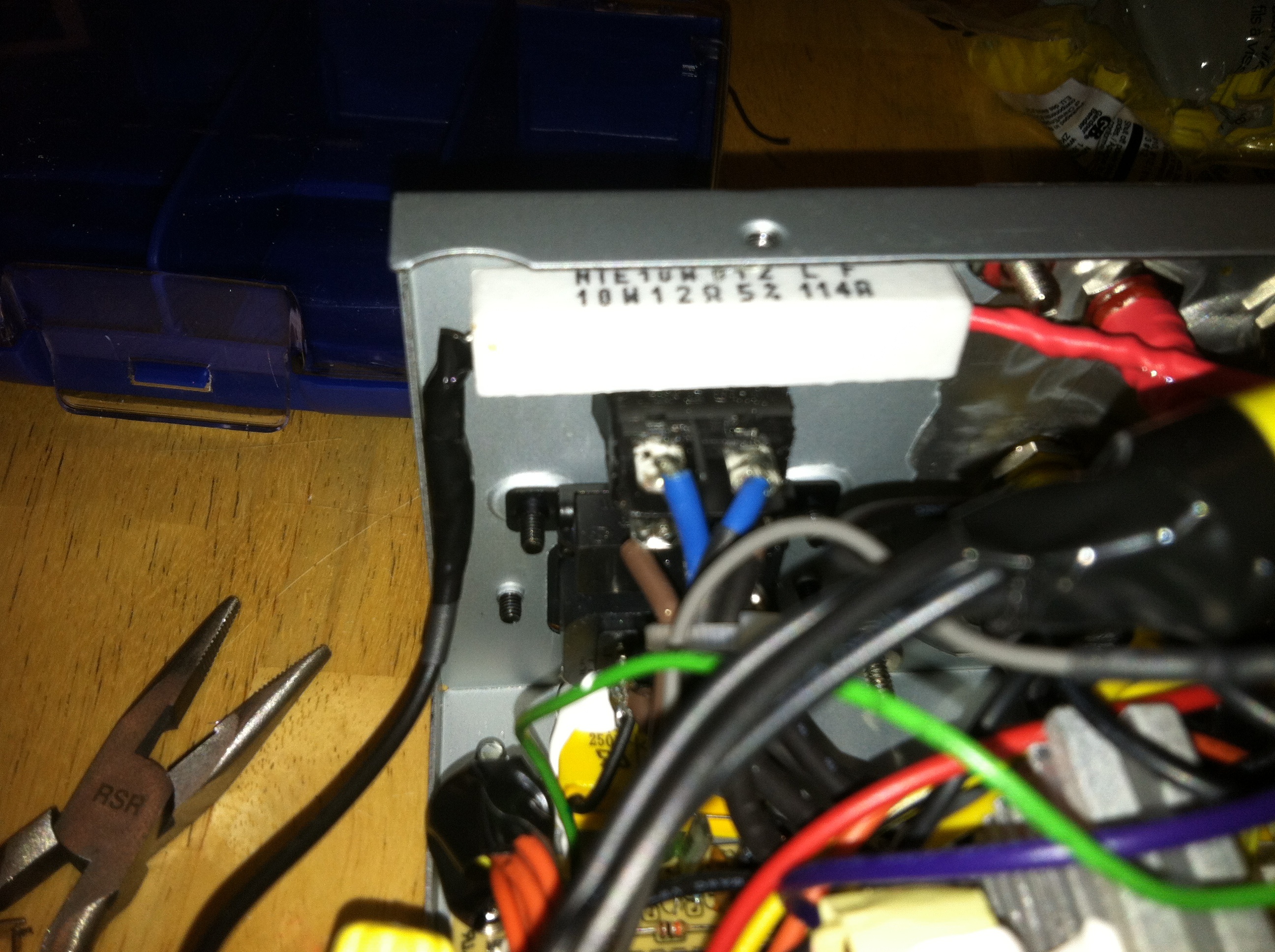 One of the several failure modes I had in the first try was trying to solder a dozen-odd wires to the binding posts in place. Not only was I wrapping a giant mess around a tiny post, I was doing so underneath and behind piles of other wires. Most of the online instructions to do this mod skip this part, saying breezily “connect all the yellow wires to the yellow (12v) post.” Uh, how do you connect that many wires to a single post? I decided to simplify by cutting each wire bundle as short as possible. Later I’ll wire-nut them together with a single strand that runs to the binding post.