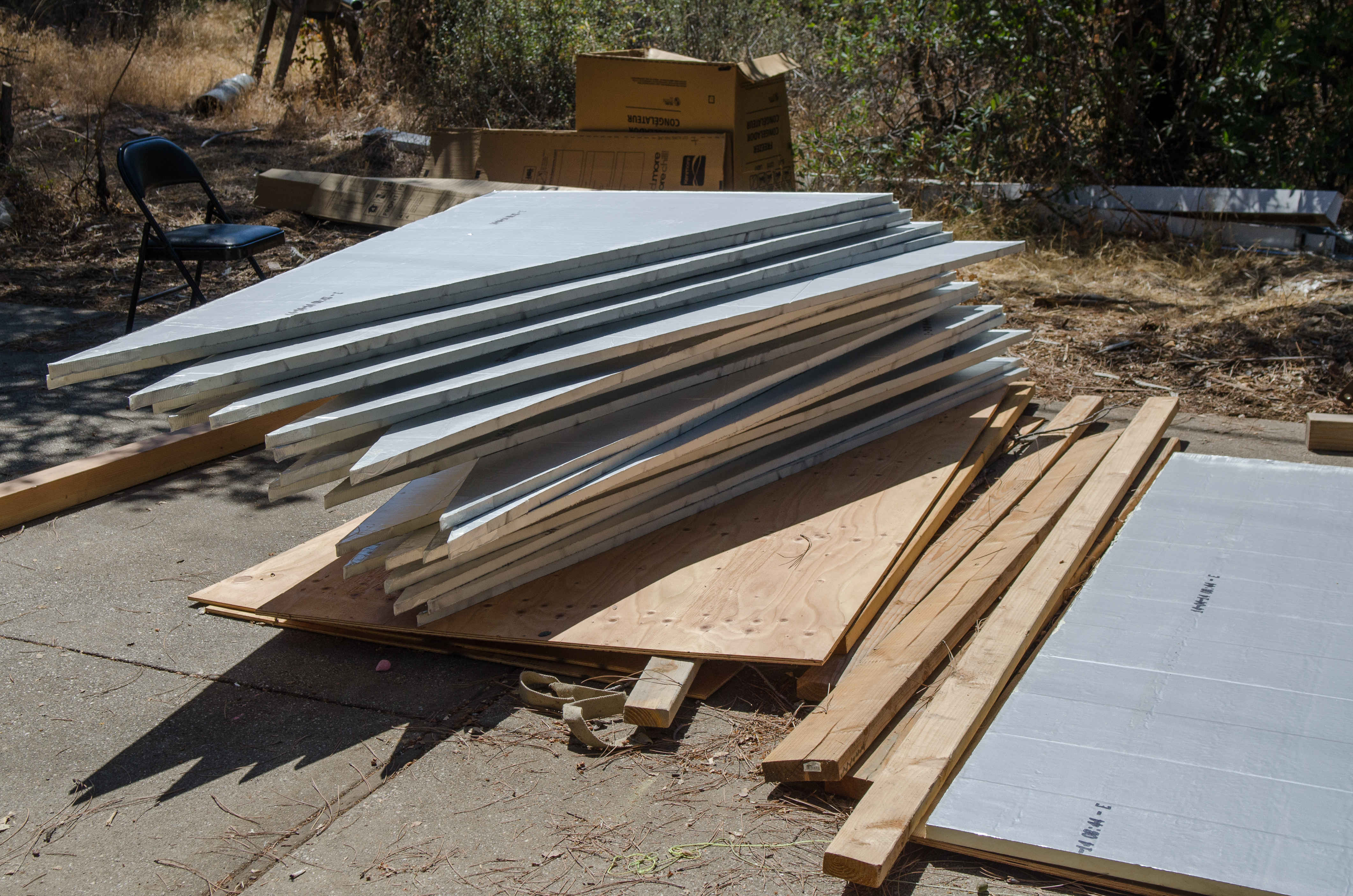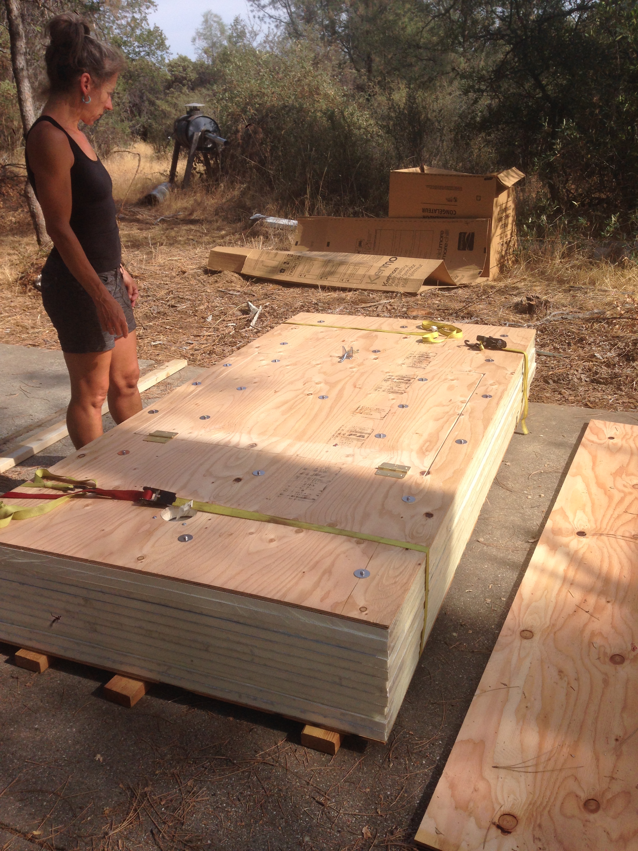 The idea is that the six-sided building is created entirely (or nearly so) from 4’x8′ fiberglas panels. It folds flat for shipping, then it folds out on the playa. I’ll just narrate our building process briefly here because this is all very well documented all over the net. In particular, we recommend Camp Danger’s howto videos.