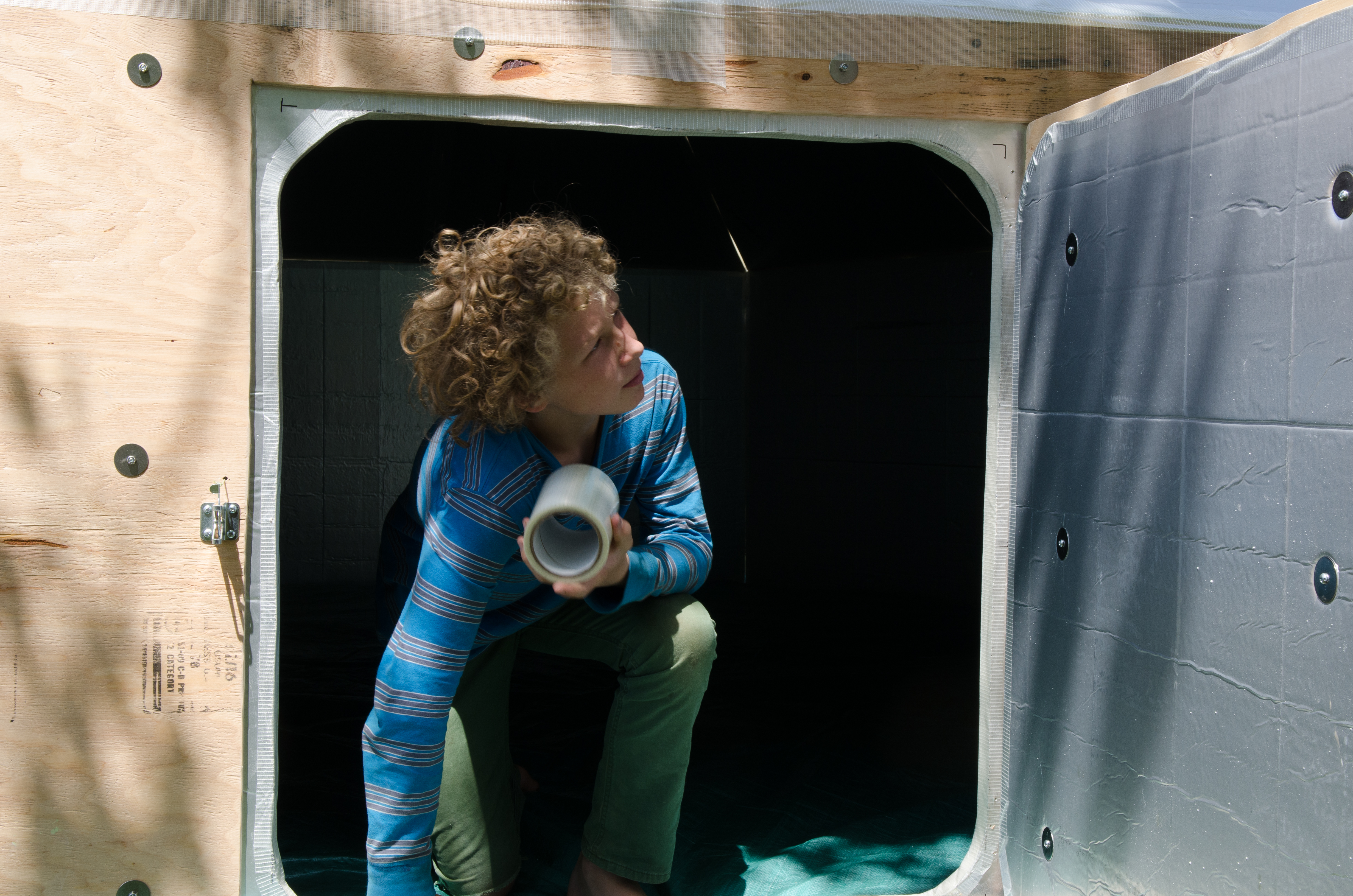 First, prepare yourself for a lot of taping. You spend hours, even days, cutting panels and covering the exposed fiberglas with massive sheets of giant packing tape.