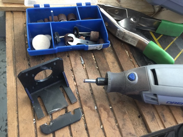 I use the dremel to cut stuff, like plastic boxes, and in this case, a seriously overspec’d steel motor mount I’m using to fix a stepper motor in a little box to create an animatronic tail for my ❤.
