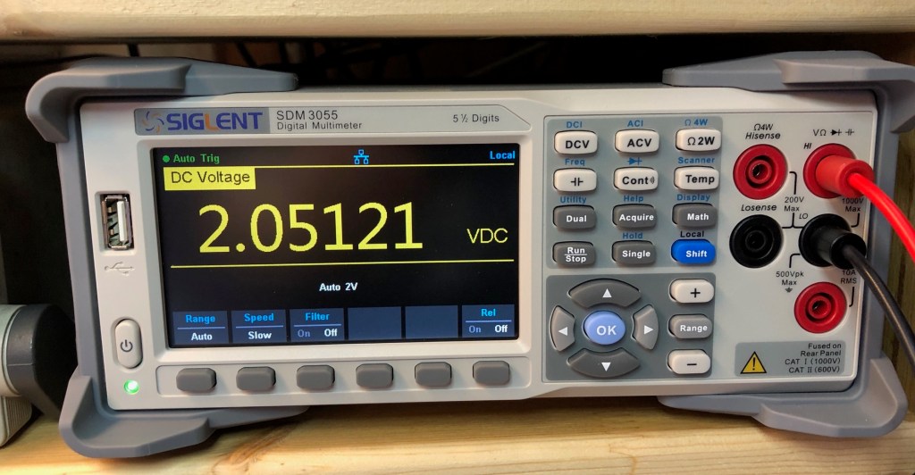 The newest toy on my bench is a Siglent SDM3055 multimeter. I won’t say more about it because mjlorton at YouTube has done a great review. The calibration cert on mine is good thru May 2020.