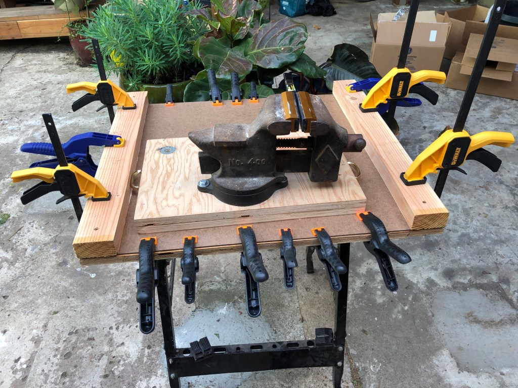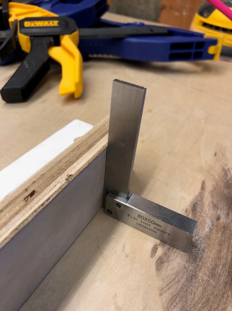 The basic idea is to drill 3/8" holes in the corners, then use a jigsaw to cut between the holes. I built three different jigs to try to get cuts straight and square. Nope, then nope, then nopest. Finally I saw a YouTube video (which I’ve now lost) that said, like everybody just knows this, to put the panel on a vise, then file the sides flat and square.