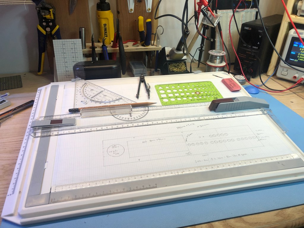 I spent a long time figuring out the layout. I should have done this with some kind of modeling software (which I really need to learn so I can do CNC milling and 3d printing), but I just Old Skool drafted it.