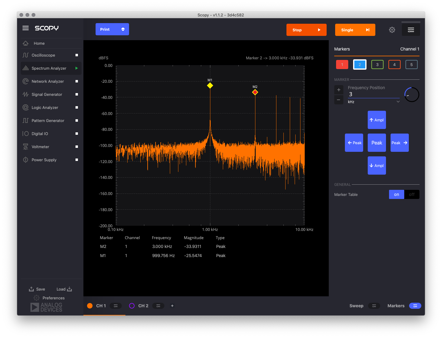 In about a half-hour, I had my key apps running: the Arduino IDE from the pop shop, Spotify from Ubuntu’s snap installation utility, and Scopy for the M2K multi-instrument in a flatpak.